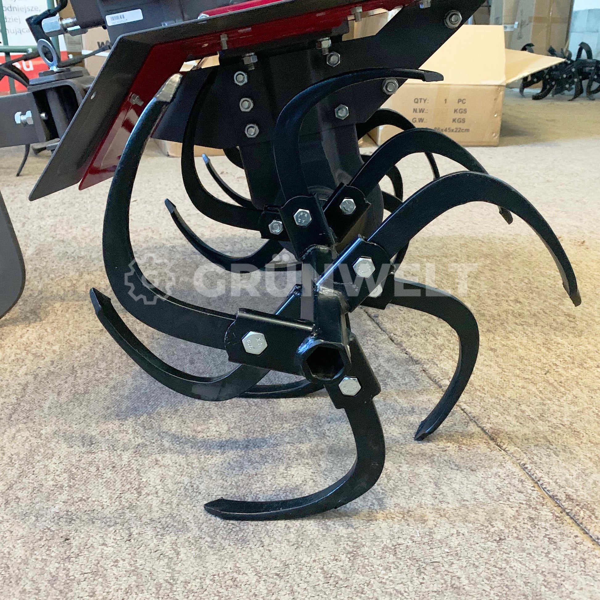 Vous avez déjà acheté chez nous une motobineuse et vous cherchez un rotateur ? Vous souhaitez économiser et ne pas acheter un appareil supplémentaire ? Nous avons une solution pour vous - le rotateur Grünwelt GW-RT32 ! Le rotateur Grünwelt GW-RT32 est un partenaire fiable pour le travail du sol à l'automne et pour le labour plus profond de la terre. L'appareil peut être installé à la place des roues sur l'arbre hexagonal. Votre motobineuse ne travaille pas la terre assez profondément et finement ? Nous avons aussi une solution pour cela ! Le rotateur GW-RT32 de la marque Grünwelt travaille plus en profondeur et en gros mottes, ce qui permet à l'humidité et à l'air d'accéder aux couches inférieures du sol et détruit également les nids de parasites. La structure du sol devient modérément grumeleuse, ce qui est optimal pour l'hiver.