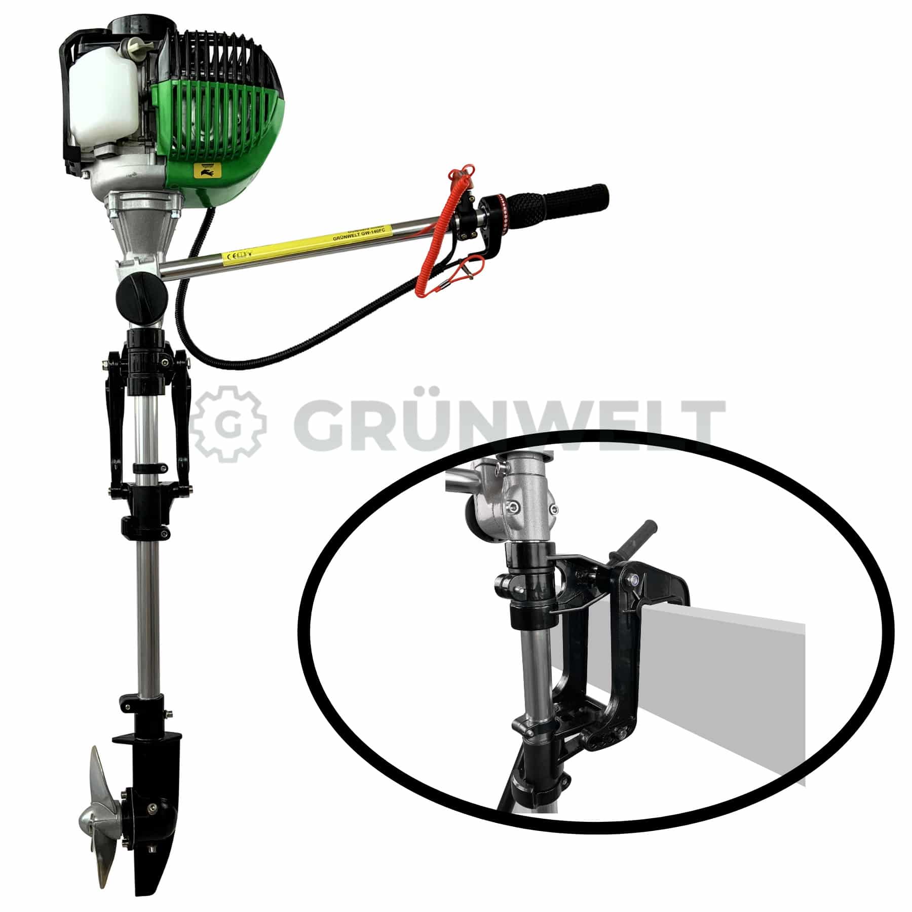 Leichtes Wunder GW-140FC! Klein aber fein! Der Grünwelt GW-140FC ist so leicht, dass Sie diesen Motor mühelos zur Anlegestelle oder zum Deck Ihres Hauptboots tragen können. Das perfekt durchdachte Kühlsystem lässt den Motor bei längerem Betrieb und hohen Drehzahlen nicht überhitzen. Aus Sicherheitsgründen und gemäß modernen Standards ist der Motor mit einem Notfallschalter ausgestattet, die den Motor bei Bedarf sofort abstellt. Dieser 4-Taktmotor mit 37.68 cm³ Hubraum und 1.5 PS Leistung eignet sich bestens für Angeln auf leichten Booten mit einer leichten Last und maximal 2 Passagieren.