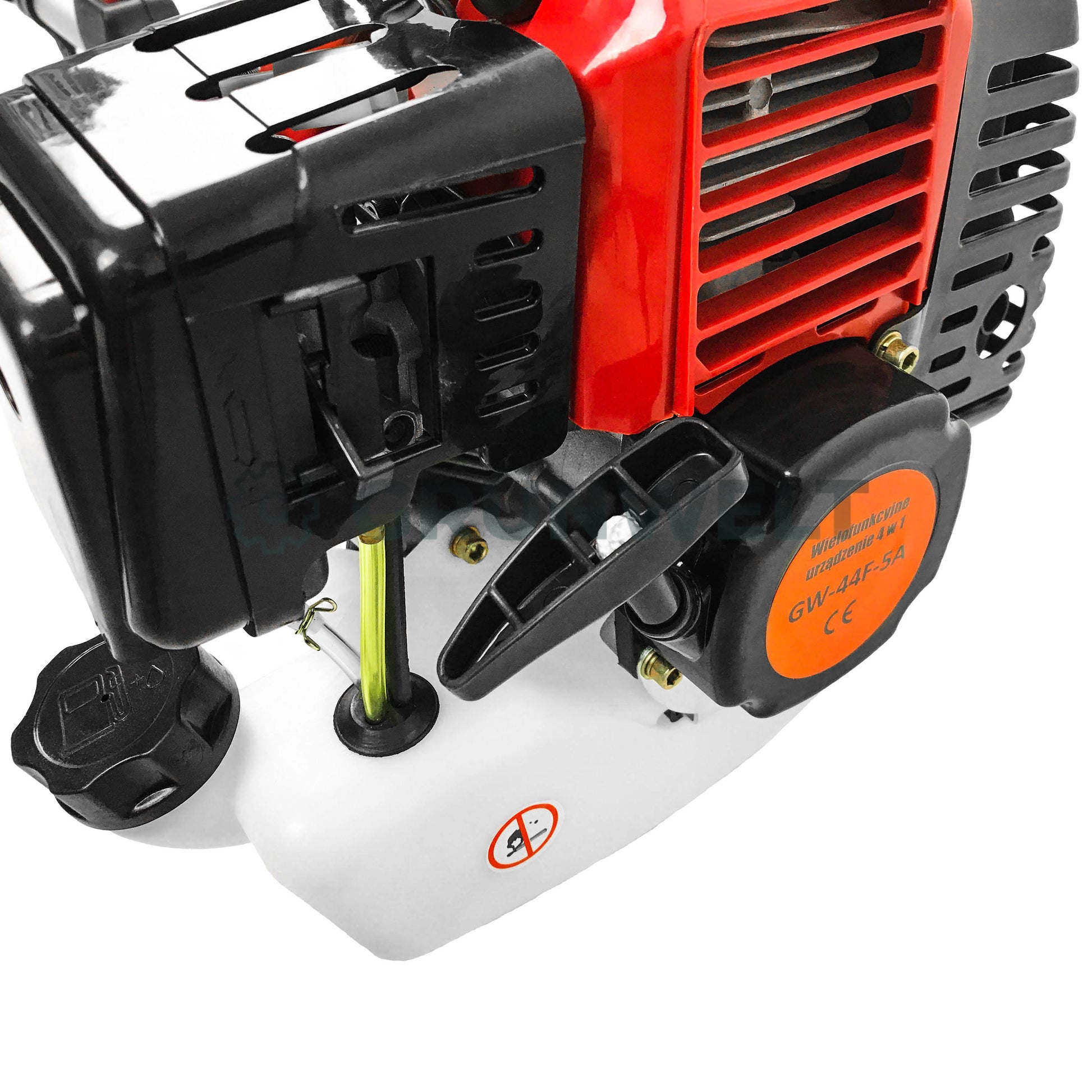 Sie suchen eine leichte und kompakte Motorsense, mit der man stundenlang ohne Rückenbelastung arbeiten kann? Brauchen Sie zusätzliche Aufsätze, um nicht nur den Rasen zu mähen? Wir haben eine Lösung für Sie! 5 in 1 Multitool Grünwelt GW-44F-5A - vielseitiger Helfer im Garten! Heckenschere, die Astkettensäge, den Freischneider, die Fadenspule = GW-44F-5A. Grünwelt GW-44F-5A ist ein vielseitiges Werkzeug, das auf Basis der Motorsense Grünwelt GW-44FA aufgebaut wurde. Dank der zusammenlegbaren Stange können verschiedene zusätzliche Aufsätze installiert werden. Um die unterschiedlichen Aufsätze zu installieren, ist es erforderlich eine Spezialklemmschraube herauszuschrauben, welche ohne spezielle Zusatzwerkzeuge verwendet werden kann. Danach wird der erforderliche Kopf des Aufsatzes eingeführt und die Klemmschraube festgezogen. Auf dem Multitool können Sie die Heckenschere, die Astkettensäge, den Freischneider, die Fadenspule sowie eine zusätzliche Stange mit der Länge von 75 cm installier werden. Das universelle Gerät für jedermann. Nicht zögern und gleich bestellen. Sie sparen beim Erwerb von unserem Multitool eine Menge Geld für extra Geräte! GW44F-5A ist absolut einzigartig.