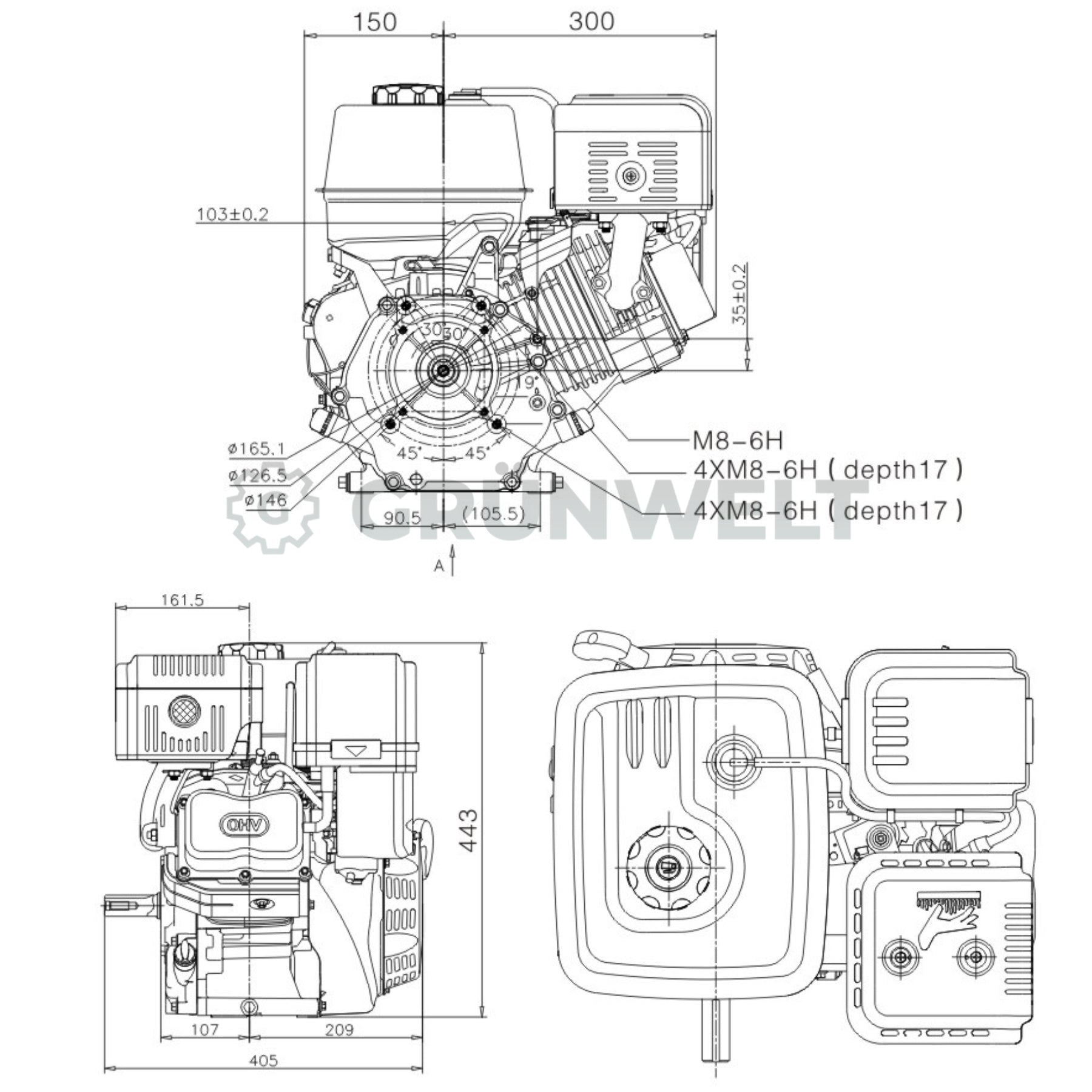 Der Loncin G390F Motor ist ein Einzylinder-Viertaktmotor, der mit Benzin betrieben wird und mit Luftkühlung ausgestattet ist. Der Motor hat die Leistung in Höhe von 13 PS. Der neue G390F Motor von Loncin ist wartungsfreundlich und zuverlässig in der Anwendung. Er hat einen niedrigen Pegel von Rauch und Lärm und Sie können den einfach und problemlos bei jedem Wetter starten. Das Anwendungsspektrum beschränkt sich nicht ausschließlich auf den industriellen Bereich. Dieses Modell des Motors kann auf den Geräten im Alltag und in der Landwirtschaft installiert werden. Der Motor Loncin G390F wird häufig als Austauschmotor für verschiedene Motorhacken, Balkenmäher, Einachser, Rüttelplatten, Mini-Dumper, Wasserpumpen, Stromerzeuger und viele andere Geräten mit dem Benzinmotor verwendet. Zudem ist der Motor Loncin G390F mit einem vergrößerten Filter, der die einströmende Luft perfekt reinigt, ausgestattet. Der Schaft der Kurbelwelle ist genormt. Der Motor Loncin G390F kann als Austauschmotor bei gleichem Kurbelwellenmaß verwendet werden. Die Kurbelwelle des Motors hat direkten Ausgang unter die Passfedernut.
