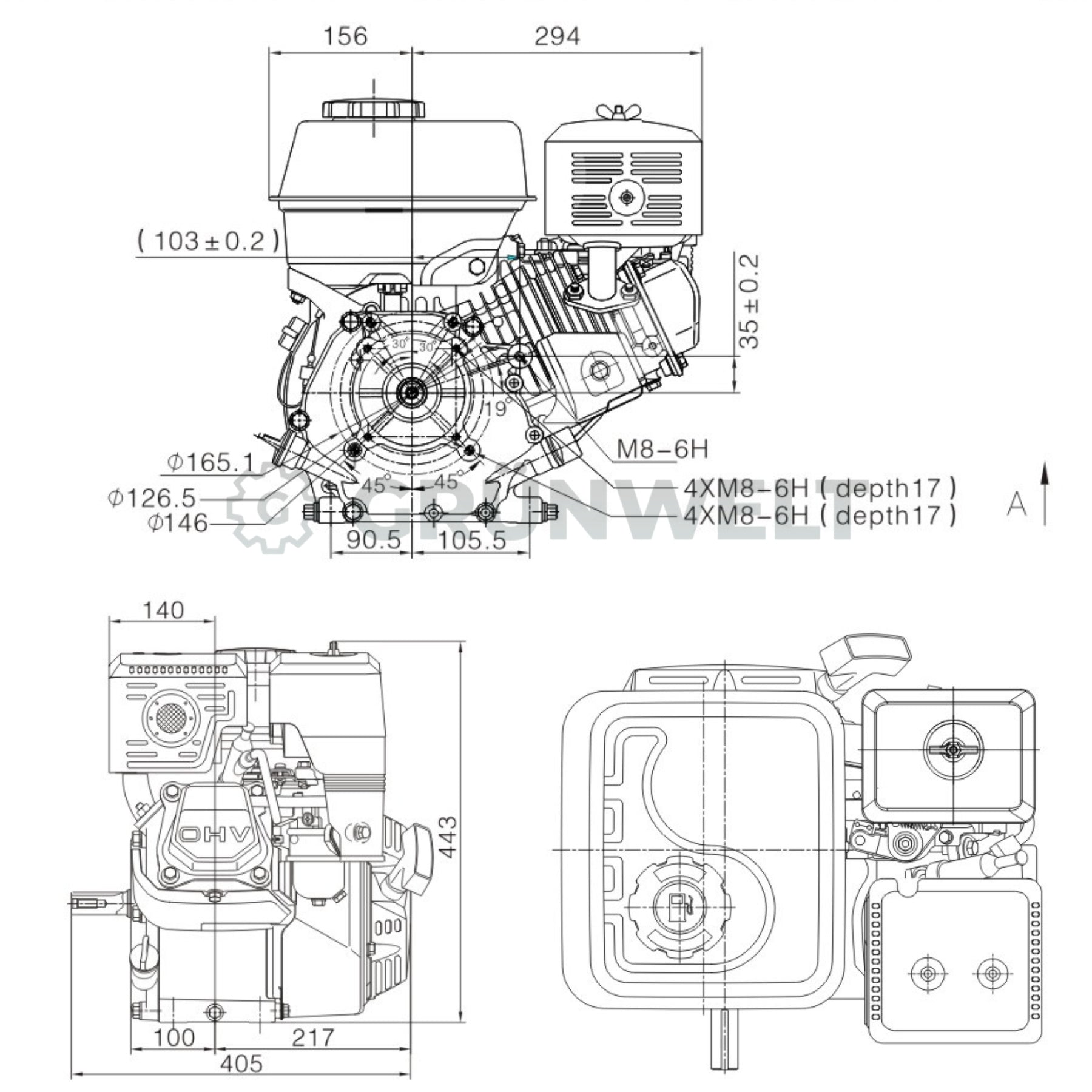 Der Loncin G420F Motor ist ein Einzylinder-Viertaktmotor, der mit Benzin betrieben wird und mit Luftkühlung ausgestattet ist. Der Motor hat die Leistung in Höhe von 16 PS. Dank seines Tanks von 6.5 Litern kann der Motor ungefähr 1.5 Stunden ohne zu tanken arbeiten. Der neue G420F Motor von Loncin ist wartungsfreundlich und zuverlässig in der Anwendung. Er hat einen niedrigen Pegel von Rauch und Lärm und Sie können den einfach und problemlos bei jedem Wetter starten. Das Anwendungsspektrum beschränkt sich nicht ausschließlich auf den industriellen Bereich. Dieses Modell des Motors kann auf den Geräten im Alltag und in der Landwirtschaft installiert werden. Der Motor Loncin G420F wird häufig als Austauschmotor für verschiedene Motorhacken, Balkenmäher, Einachser, Rüttelplatten, Mini-Dumper, Wasserpumpen, Stromerzeuger und viele andere Geräten mit dem Benzinmotor verwendet. Zudem ist der Motor Loncin G420F mit einem vergrößerten Filter, der die einströmende Luft perfekt reinigt, ausgestattet. Der Schaft der Kurbelwelle ist genormt. Der Motor Loncin G420F kann als Austauschmotor bei gleichem Kurbelwellenmaß verwendet werden. Die Kurbelwelle des Motors hat direkten Ausgang unter die Passfedernut.