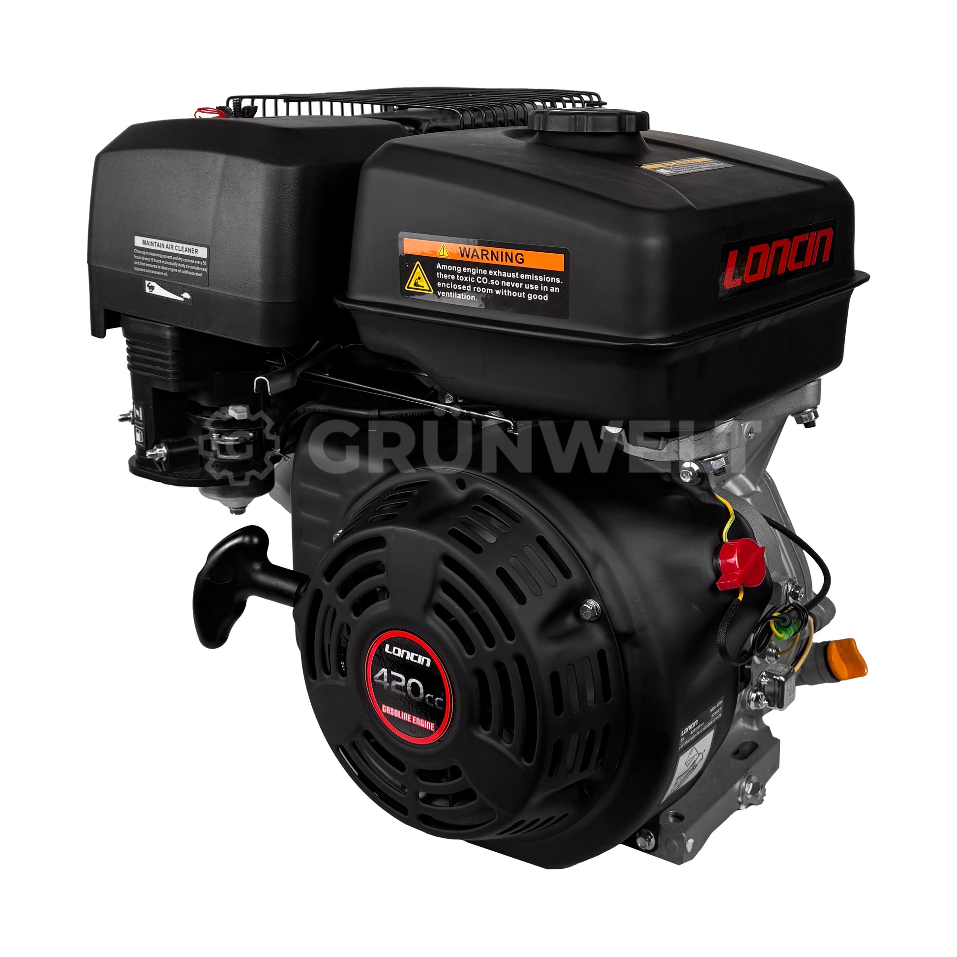 Der Loncin G420F Motor ist ein Einzylinder-Viertaktmotor, der mit Benzin betrieben wird und mit Luftkühlung ausgestattet ist. Der Motor hat die Leistung in Höhe von 16 PS. Dank seines Tanks von 6.5 Litern kann der Motor ungefähr 1.5 Stunden ohne zu tanken arbeiten.