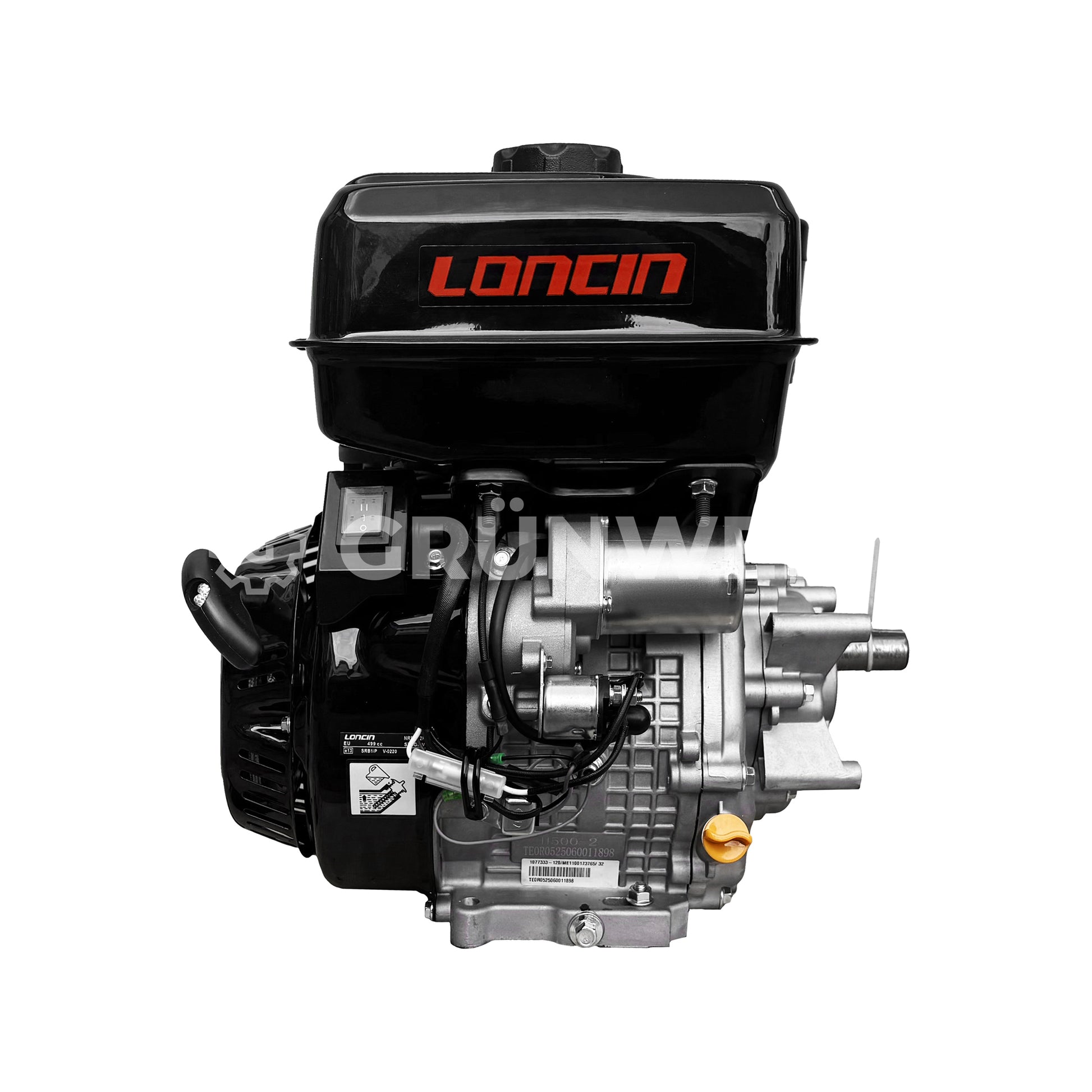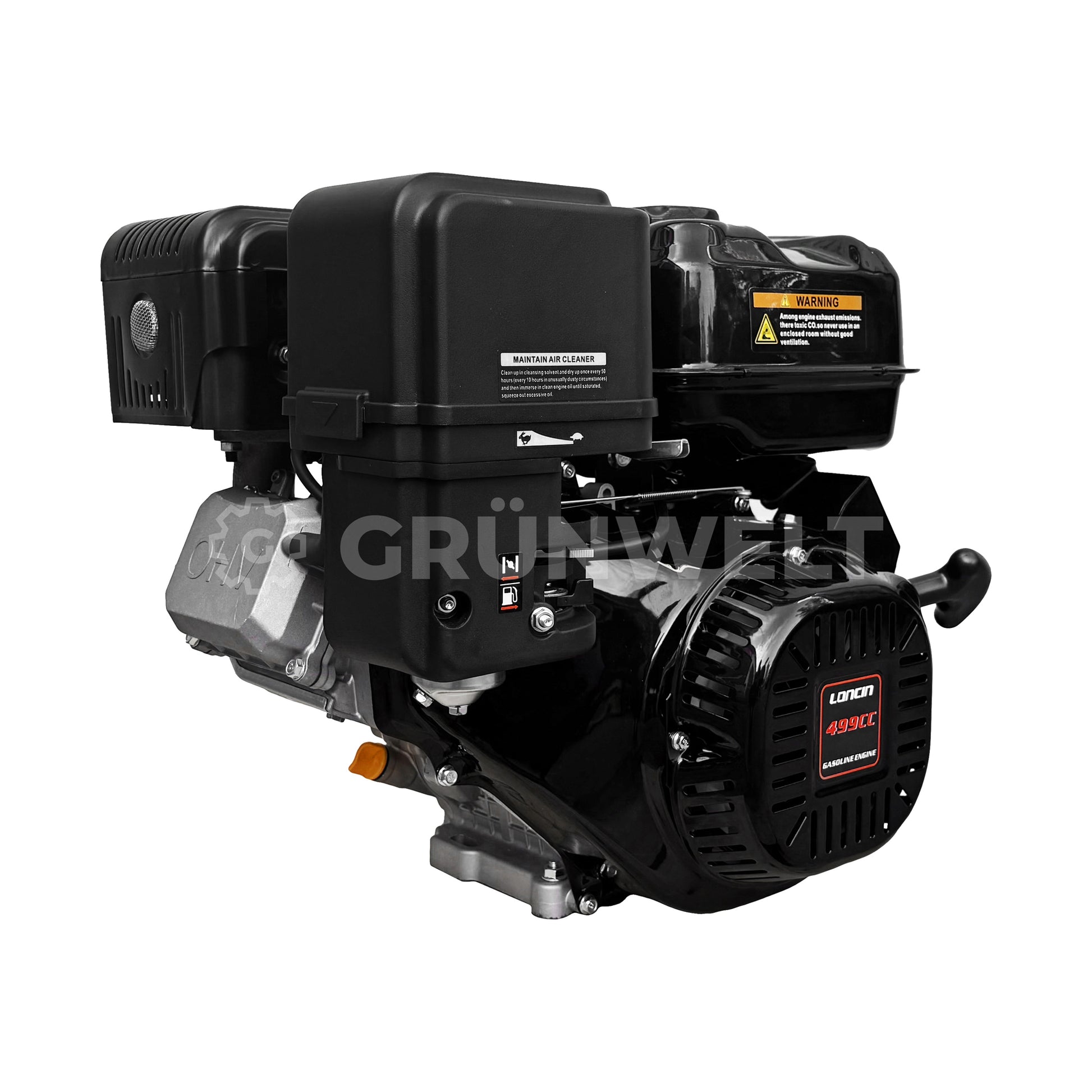 Der Loncin H500D-2-D Motor ist ein Einzylinder-Viertaktmotor, der mit Benzin betrieben wird und mit Luftkühlung ausgestattet ist. Der Motor hat die Leistung in Höhe von 20 PS. Der neue H500D-2-D Motor von Loncin ist wartungsfreundlich und zuverlässig in der Anwendung. Er hat einen niedrigen Pegel von Rauch und Lärm und Sie können den einfach und problemlos bei jedem Wetter starten. Das Anwendungsspektrum beschränkt sich nicht ausschließlich auf den industriellen Bereich. Dieses Modell des Motors kann auf den Geräten im Alltag und in der Landwirtschaft installiert werden. Der Motor Loncin H500D-2-D wird häufig als Austauschmotor für verschiedene Motorhacken, Balkenmäher, Einachser, Rüttelplatten, Mini-Dumper, Wasserpumpen, Stromerzeuger und viele andere Geräten mit dem Benzinmotor verwendet. Zudem ist der Motor Loncin H500D-2-D mit einem vergrößerten Filter, der die einströmende Luft perfekt reinigt, ausgestattet. Der Schaft der Kurbelwelle ist genormt. Der Motor Loncin H500D-2-D kann als Austauschmotor bei gleichem Kurbelwellenmaß verwendet werden. Die Kurbelwelle des Motors hat direkten Ausgang unter die Passfedernut.