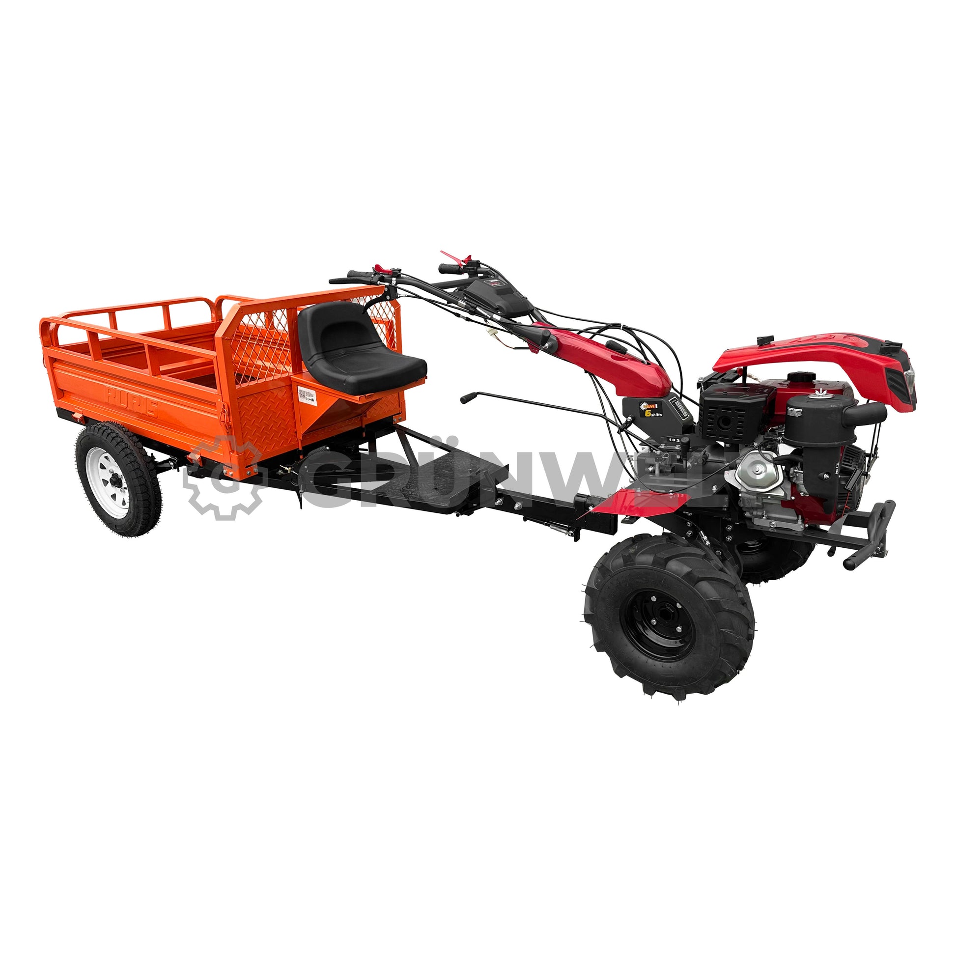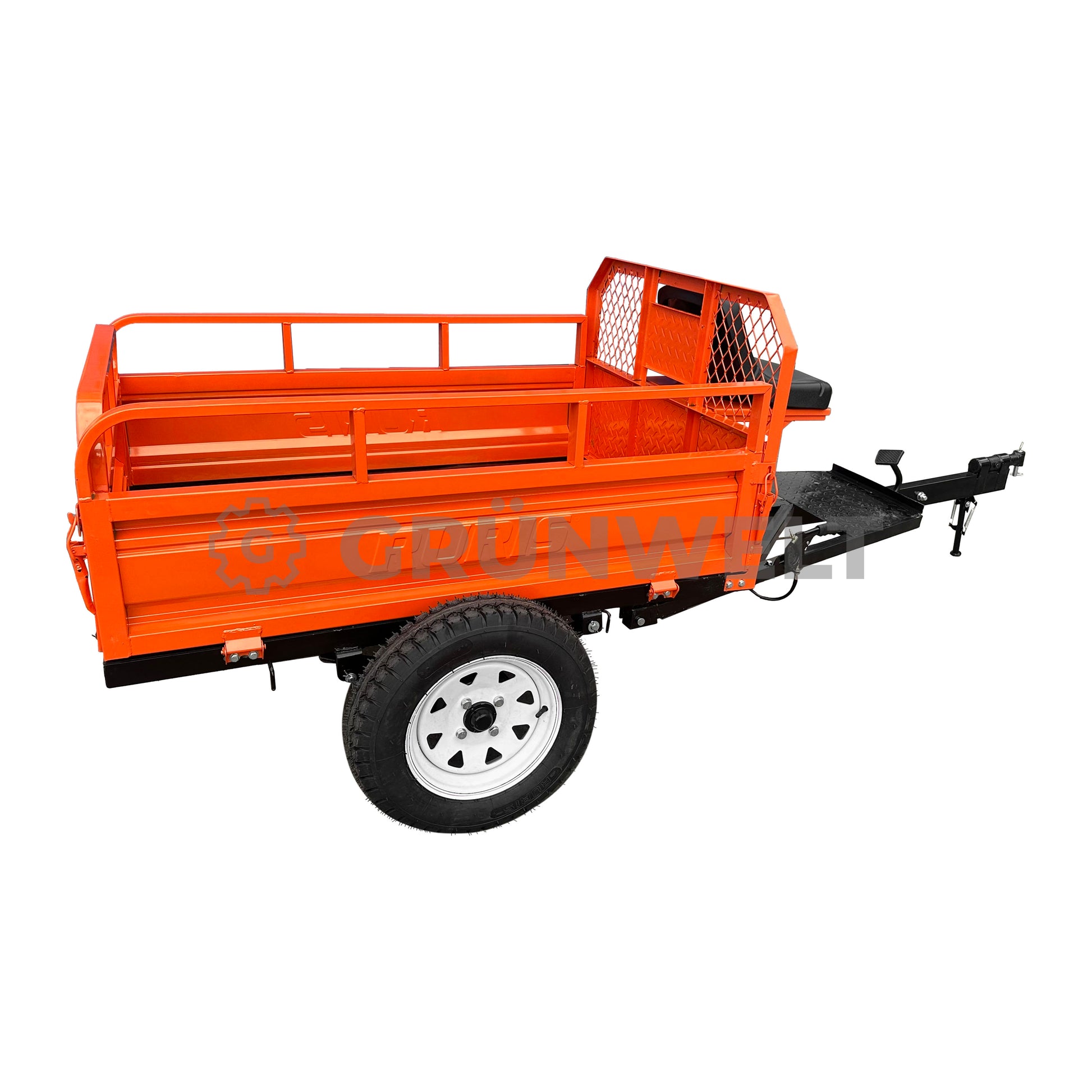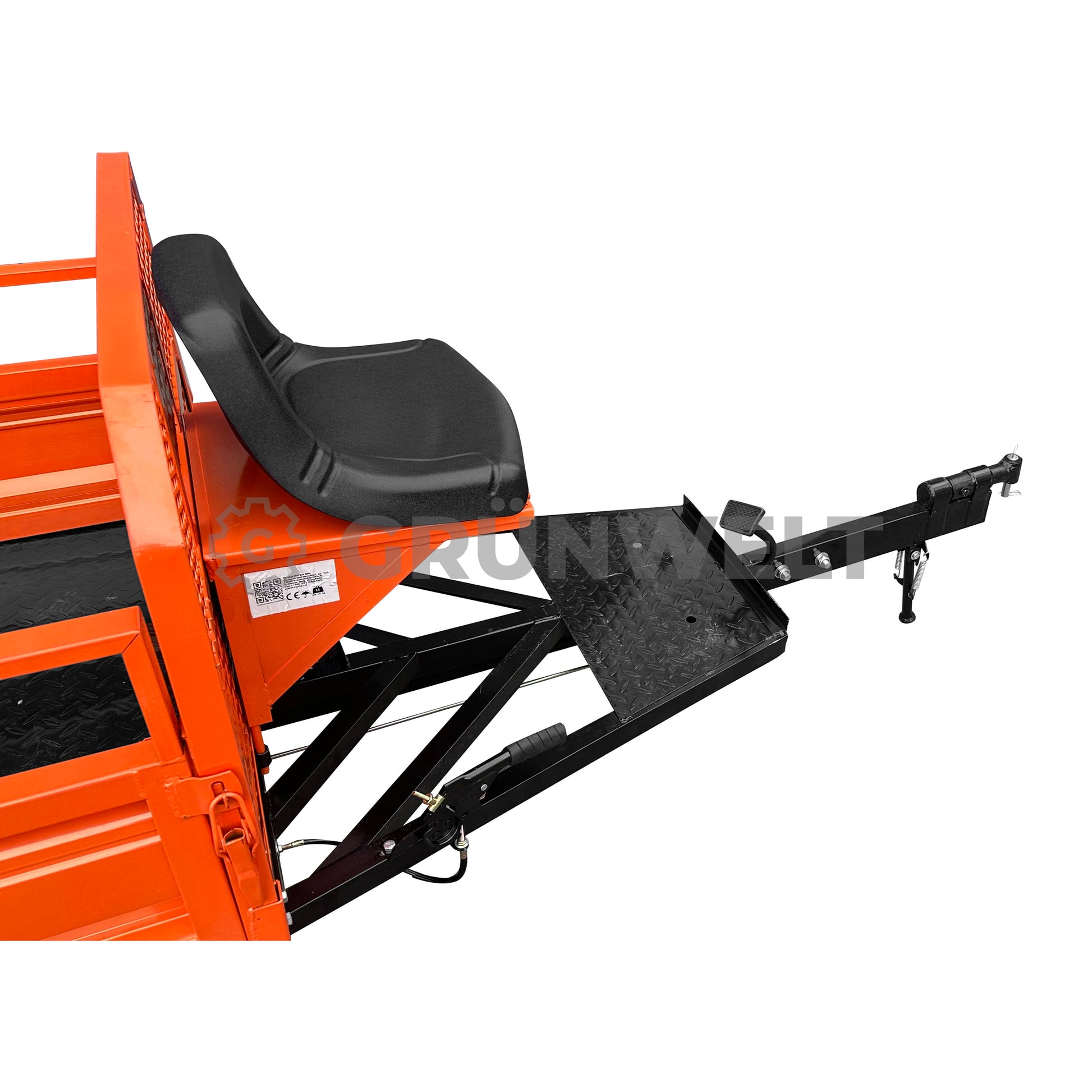 Unser neuer RURIS 550S ist ein funktionaler und zuverlässiger Transportanhänger, der speziell für den Einsatz in der Landwirtschaft entwickelt wurde. Ideal für den Transport von Saatgut, Erntegut und anderen landwirtschaftlichen Materialien, überzeugt er durch seine robuste Konstruktion und sein verstärktes Fahrgestell, das selbst unter schwierigen Geländebedingungen zuverlässig arbeitet. Der Anhänger ist mit einem Hand- und Fußbremssystem sowie einem Kippmechanismus ausgestattet, der das Entladen deutlich erleichtert. Der auf Scharnieren gelagerte Rahmen ermöglicht die Kippfunktion, was die Vielseitigkeit des Anhängers im täglichen Arbeitseinsatz erheblich erhöht. Ein abschließbares Staufach unter dem Sitz bietet Platz für Werkzeuge oder Zubehör, während die integrierten Lammellenfedern für verbesserten Fahrkomfort auf unebenem Gelände sorgen. Hinweis: Der Anhänger ist nicht für den Einsatz im öffentlichen Straßenverkehr zugelassen und darf nicht auf Hängen über 10° Neigung verwendet werden.