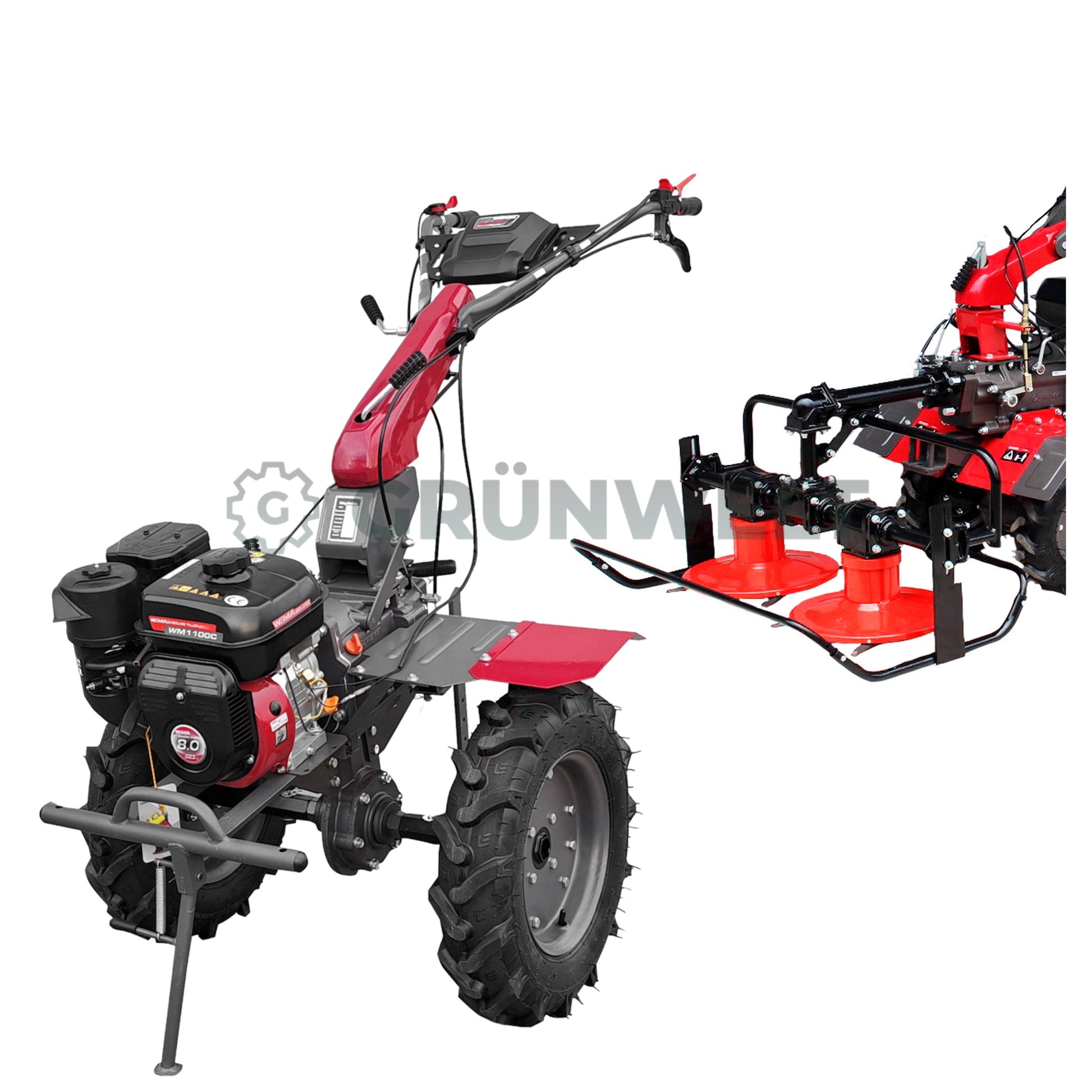 Weima WM1100C-6 Deluxe Motorhacke Weima WM1100C-6 Deluxe ist mit den Fräsen (2+1+1) mit einer Arbeitsbreite von 110 cm ausgestattet und kann mit einer Vielzahl von Anbaugeräten arbeiten, einschließlich der Kreiselmäher. Darüber hinaus kann das Mähen zum Ernten von Heu mit einem Transportwagen durchgeführt werden.