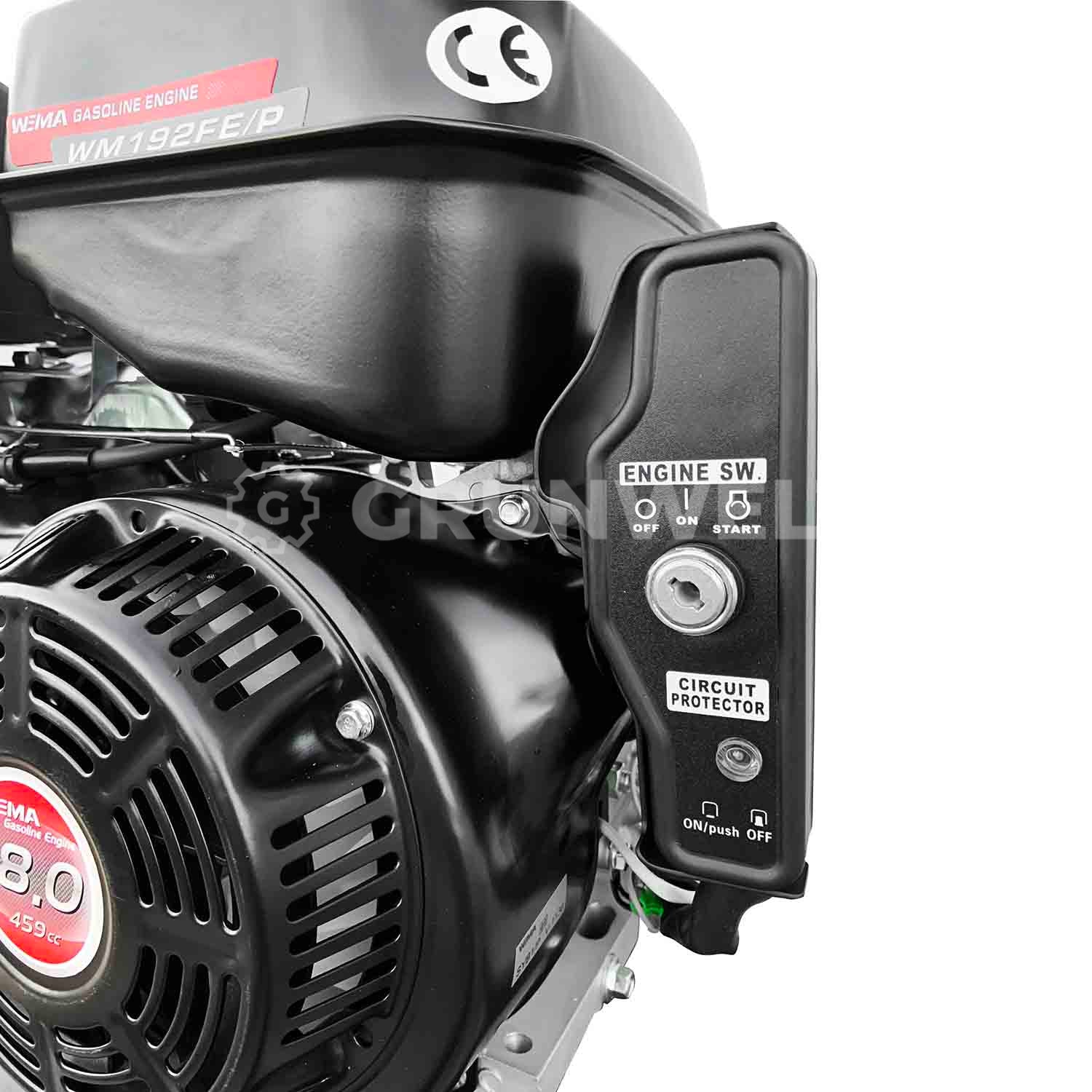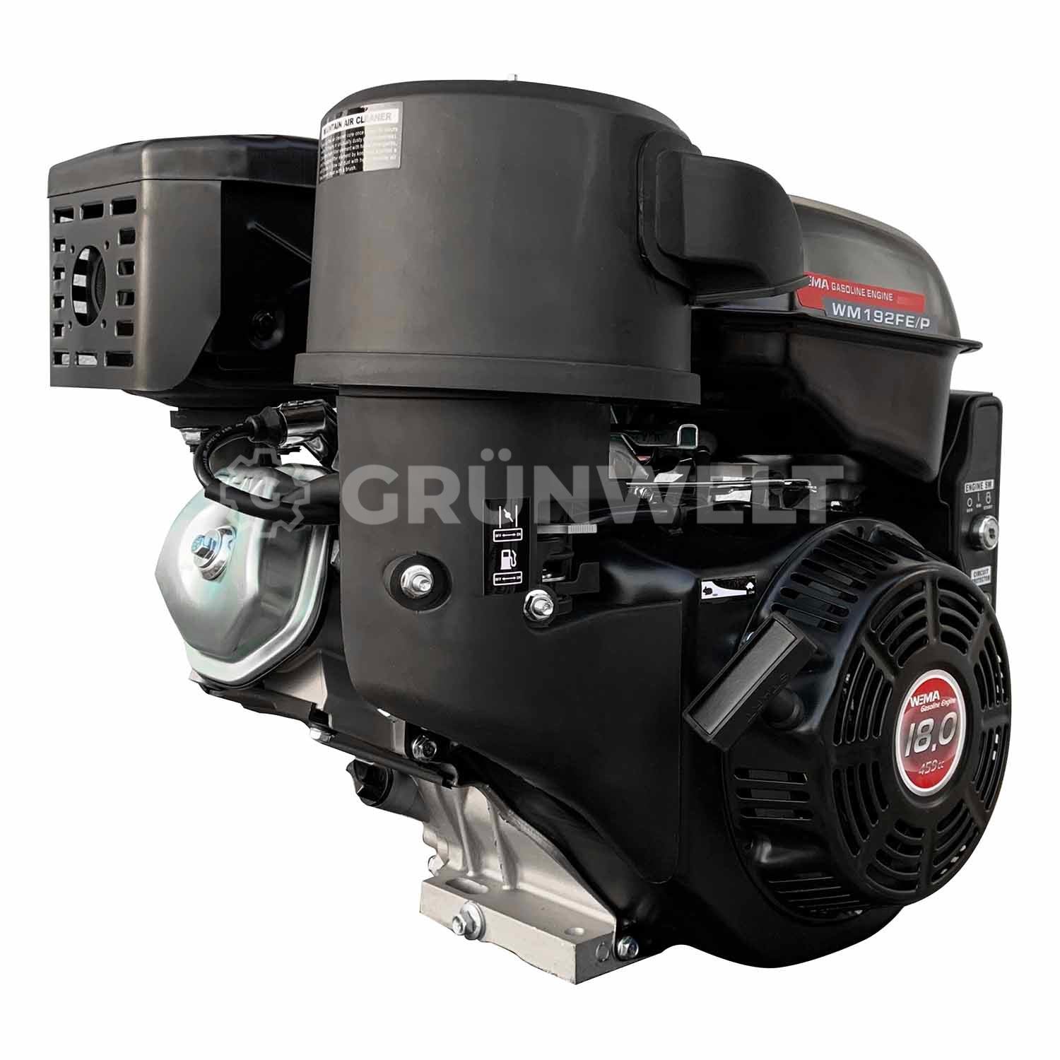 Der Weima WM192FE-L Motor ist ein Einzylinder-Viertaktmotor, der mit Benzin betrieben wird und mit Luftkühlung ausgestattet ist. Der Motor hat die Leistung in Höhe von 18 PS und verbraucht 374 g/kWh des Kraftstoffes. Dank seines Tanks von 6.5 Litern kann der Motor ungefähr 1.5 Stunden, ohne zu tanken arbeiten.