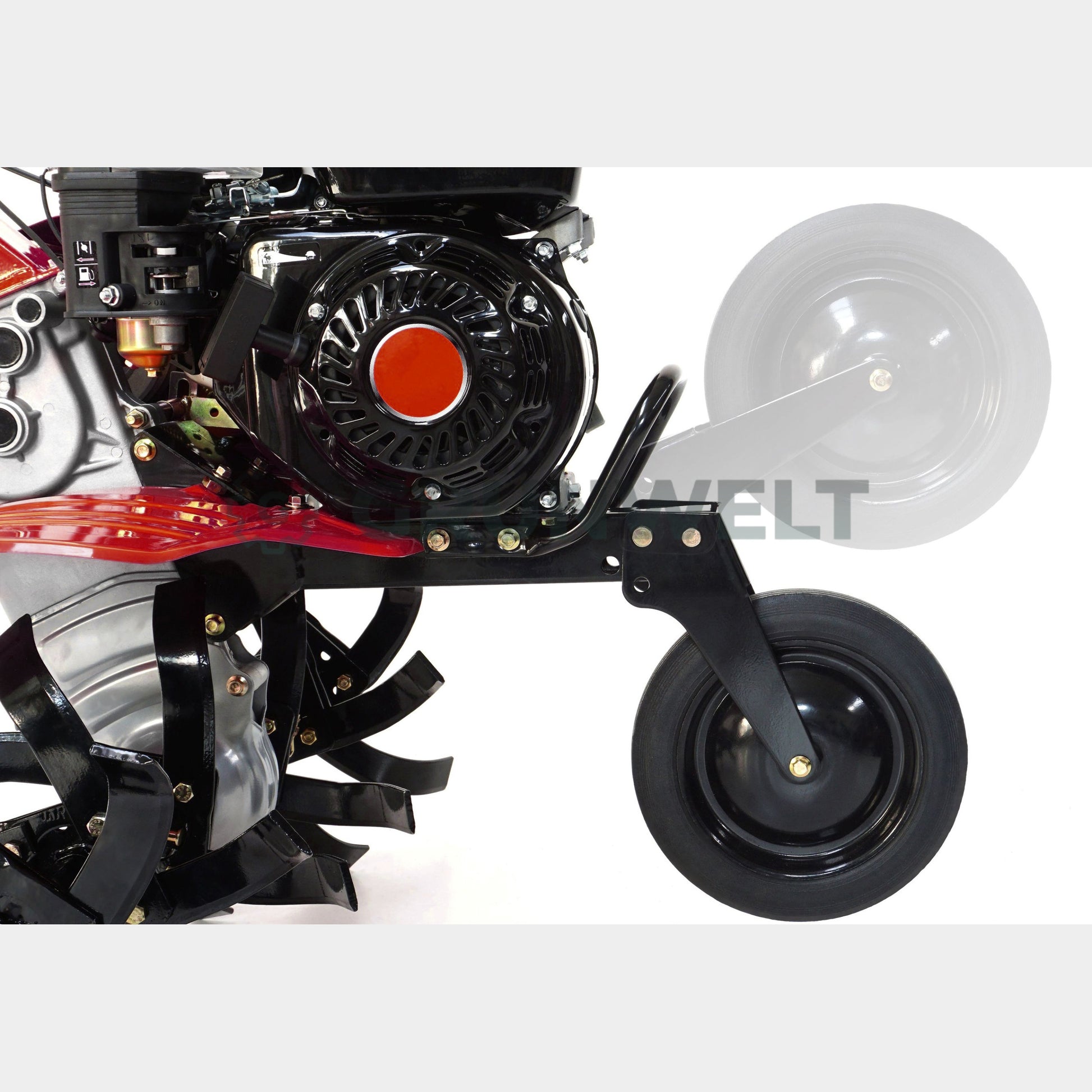 Das neue Weima WM500 mit Pflug G-2 ist einfach in der Bedienung und zeichnet sich durch ein geringes Gewicht von anderen Motorhacken der gleichen Klasse aus. Motorhacke Weima WM500 - ist eine gute Variante für die Realisierung aller möglichen landwirtschaftlichen Arbeiten mit einer Fläche von bis zu 40 Aren oder für die Verarbeitung zwischen den Reihen in viel größeren Flächen, dank einer zweistufigen Reduzierung, die auch bei einer Reihe von Transportaufgaben helfen wird. Die Motorhacke kann mit kleinen Eisenrädern arbeiten, die in den Mittelgang untergebracht sind, sowie die großen, sich auf zwei nebeneinander bewegen. Der Riemenantrieb, der sich durch seine Zuverlässigkeit auszeichnet, schützt den Motor vor Überlastung beim schwierigen Untergrund. Um bequemer zu arbeiten, ist diese Motorhacke mit einem Lenkrad ausgerüstet, das nicht nur in der Höhe justierbar ist, sondern auch für den Einsatz der Motorhacke eingestellt werden kann. Wenn auf der Motorhacke die Schaufelräder montiert sind, ist es möglich, die Anbaugeräte daran zu befestigen. Wie zum Beispiel Pflug, Häufelpflug, Kartoffelpflug, Schälpflug, Kartoffellegemaschine, Anhänger usw. Zudem ist die Motorhacke mit einem Pflug G-2 ausgestattet, das optimale und bequeme Bodenbearbeitung ermöglicht. Es wird zum Lockern, Zerbröckeln und zur teilweisen Durchmischung des Bodens verwendet, mit dem Ziel, die Bodenrückstände von Pflanzen und Unkräutern tief einzubetten, um sie weiter verrotten zu lassen und zu zerstören. Die gepflügte Bodenschicht ist im Winter besser mit Feuchtigkeit gesättigt. Das Getriebe hat 3 Geschwindigkeiten: 2 Vorwärts- und 1 Rückwärtsgang. Vier Zinken mit einer Arbeitsbreite von 80 cm werden serienmäßig mitgeliefert und können bis zu einer Tiefe von 30 cm verwendet werden. Die Motorhacke von Weima wird entleert geliefert. Man braucht weiterhin für das Grundgerät 0.95 - 1.1 L Getriebeöl (SAE 80w-90) und 0.6 - 0.7 L Motoröl (SAE 10w-30 oder 10w-40).