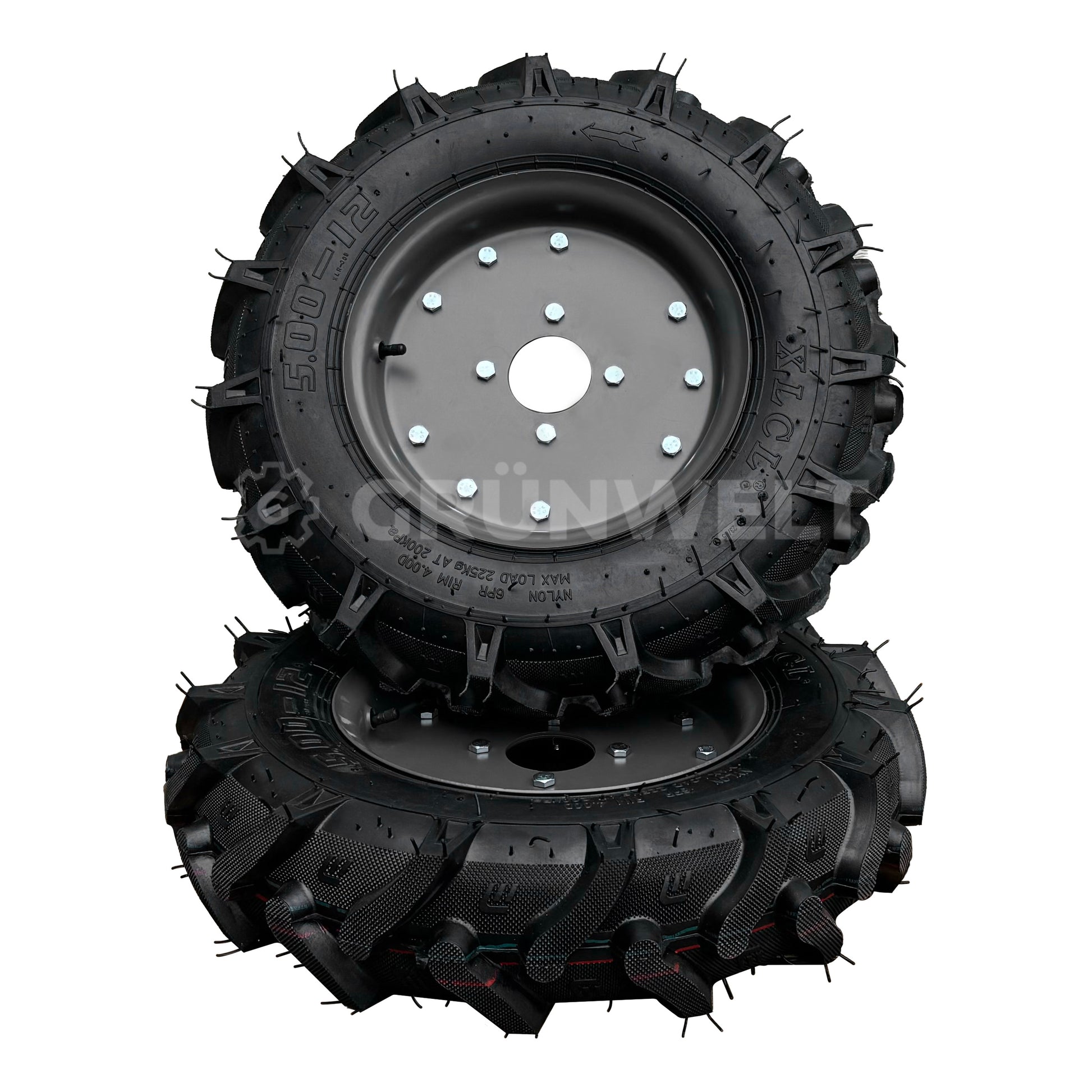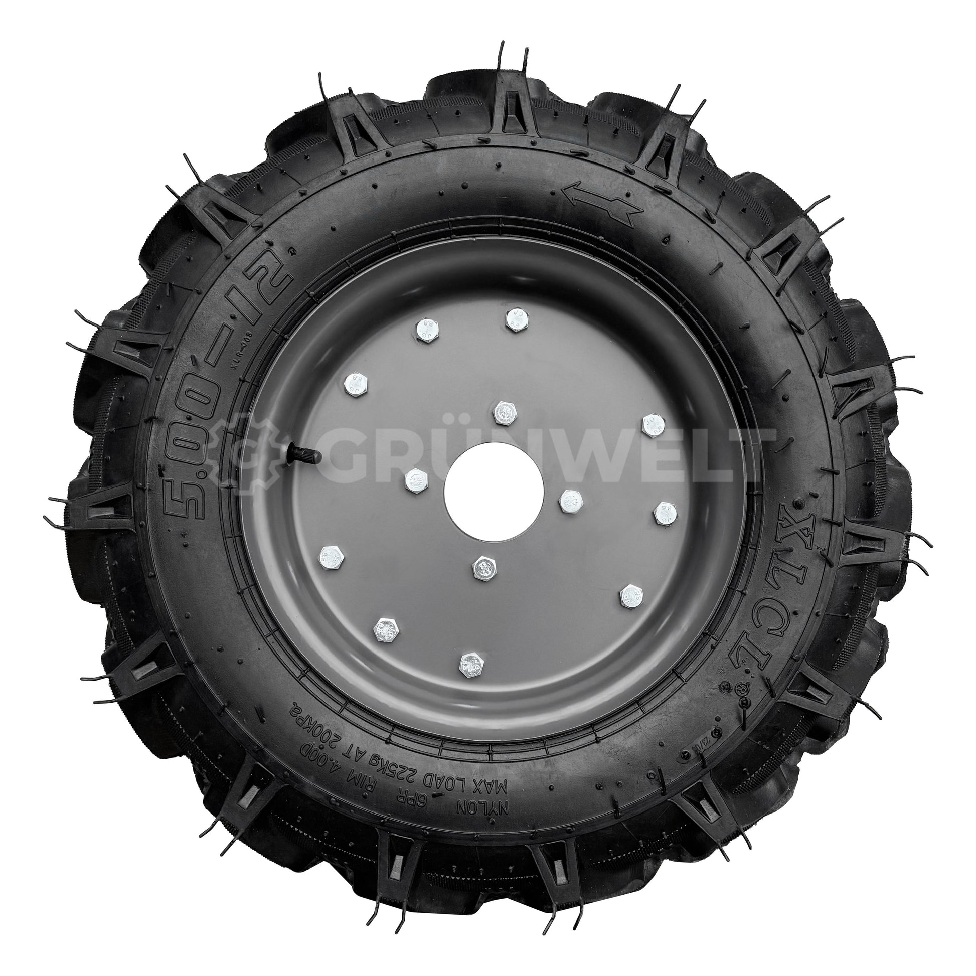 Suchen Sie die passenden Ersatzräder für solche Geräte, wie Motorhacken, Einachser, Holzhacker, Schlegelmulcher, Mini-Dumper oder andere, dann sind Sie richtig bei uns! Unsere hochwertigen Räder (5.00-12") mit Schlauchreifen mit 120 mm Reifenlauffläche sind genau das, was Sie brauchen! Schlauchreifen bieten durch den flexibel anpassbaren Luftdruck verbesserte Stabilität und haben zudem eine lange Lebensdauer, weil sie hitze-, reibungs- und oxidationsbeständig sind. Unsere Räder bieten Ihnen maximale Belastbarkeit und eine lange Lebensdauer – damit Sie sich auf Ihre Arbeit konzentrieren können. Profitieren Sie von Qualität, die sich bewährt! So bleibt Ihr Gerät länger einsatzbereit!