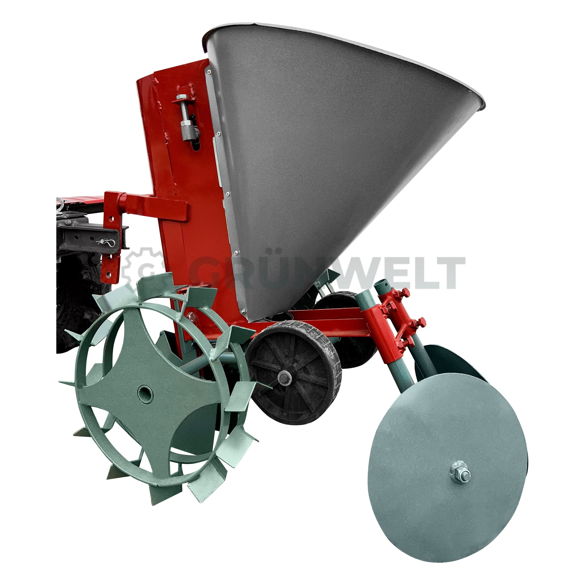 Если вы хотите сажать картофель, то Grünwelt GW-KL01 однозначно является правильным выбором. Этот инструмент — ваш надежный помощник для этой задачи. Почва с его помощью оптимально подготавливается к посадке, что способствует получению большего урожая. Вы не пожалеете о покупке! Наш картофелесажатель Grünwelt GW-KL01 — это абсолютная «необходимость» для вашего хозяйства и огорода. Grünwelt GW-KL01 устанавливается на мотокультиватор или минитрактор с помощью навесного устройства. С этим инструментом процесс посадки становится значительно проще.